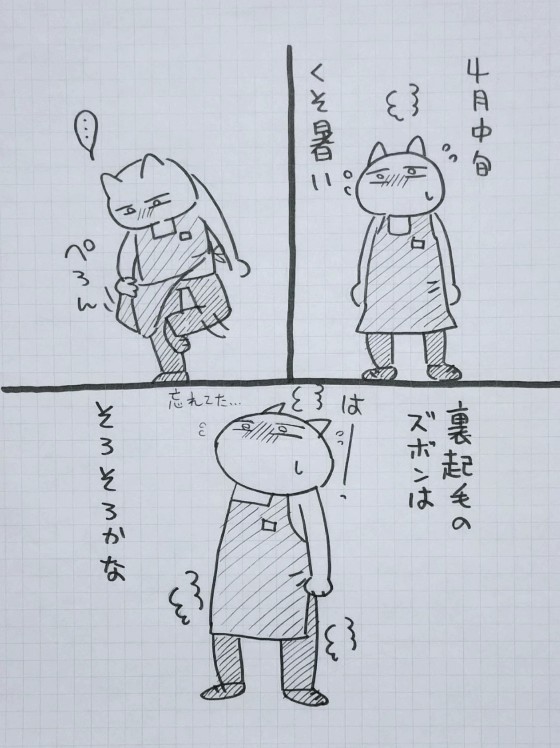 もうそろそろと言っていた仕事着の裏起毛のスボンはまだ履いてるよ!