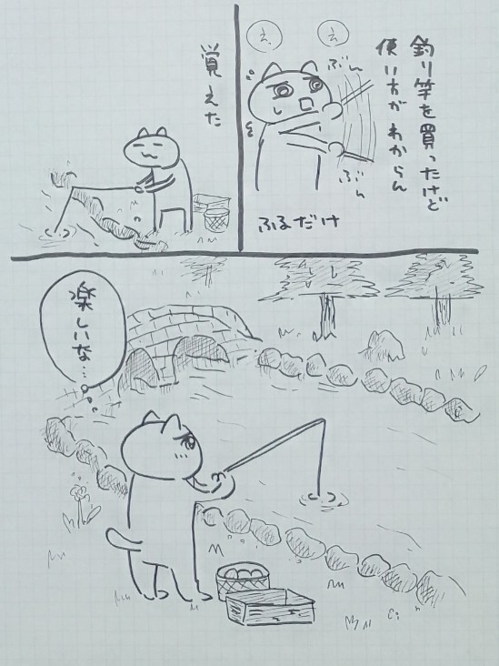 最初は釣竿の使い方がわからず、武器みたいに振っていたんですけど