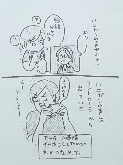 差し替えるのが面倒なので、モニターにイヤホン指してたんですよ