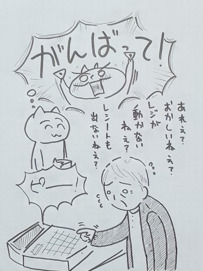 『おかしいねぇ?レジが動かないねぇ?』と必死のおじいちゃん店長