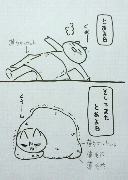 暑い!と薄タオルケットだけで寝たら朝方寒いし