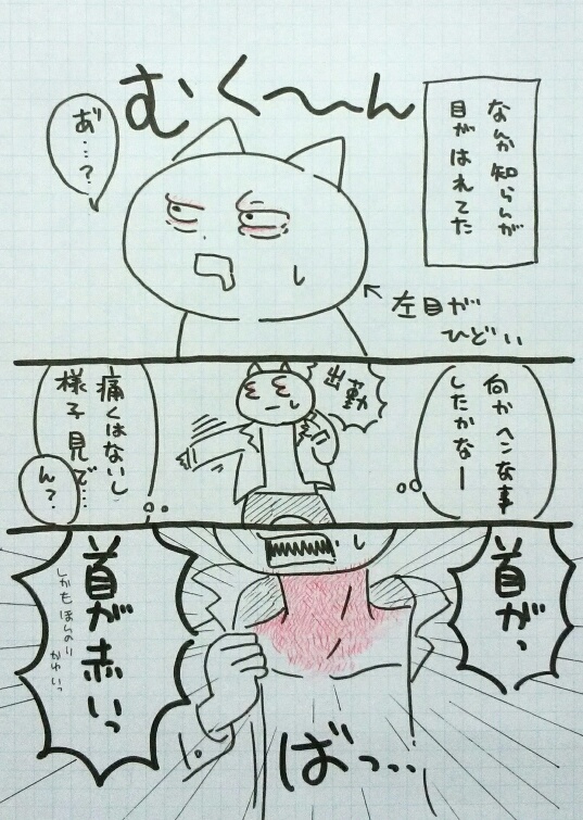 んで、出勤前に着替えてたら首も赤くなってるのに気付いた