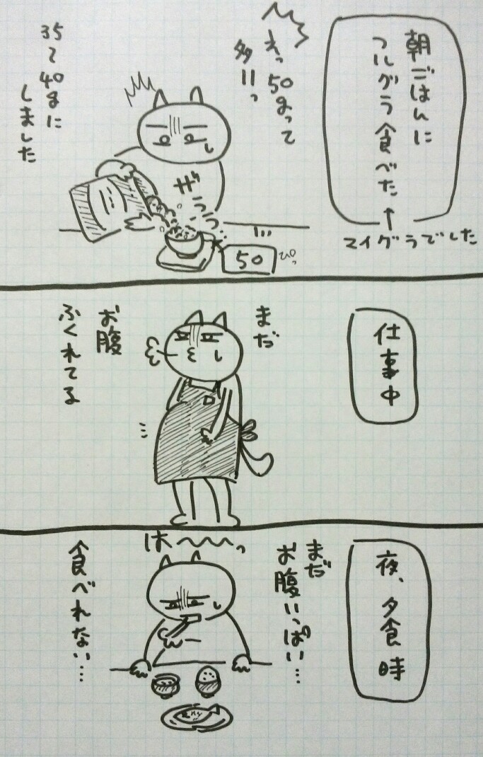 昼になっても、夜になってもお腹いっぱいで苦しかった