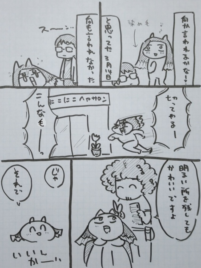 飼い猫のごまちゃんが、3月の中旬頃からご飯をあまり食べなくなって 動物病院に連れて行って採血したり検査してもらったんだけど これといって悪い所は無く、食欲の出る薬を注射してもらって 様子見てたんだけど改善しない いつも行ってる動物病院ではこれ以上の検査ができないため 隣町の動物病院を紹介してもらったので ママンとお父ちゃんに連れて行ってもらいました(豊川仕事) そしたら胃が悪かったらしく 胃がんか胃のリンパ腫だそうで エコーの画像で胃が真っ暗だったそうです 猫って『よく吐く』って言うので ごまちゃんがよく吐いていたのは早食いからなるものとか 思っていたけど、胃が悪かったんだね 早めに気がついてあげられなくてごめんね もっと早期に発見できたら何かしらの手術等ができたと思うんだけど 手術はもう無理ぽい 今日はお薬飲んだけどご飯は食べてない 不甲斐ない飼い主過ぎて泣いちゃうんだけど我慢してる でも、夜一人になったりした時や、何もしていない時涙が出てしまう 私の命ならなんぼでもあげられるのにね そうはできないんだよね。悲しいね 明日も薬飲もうね |