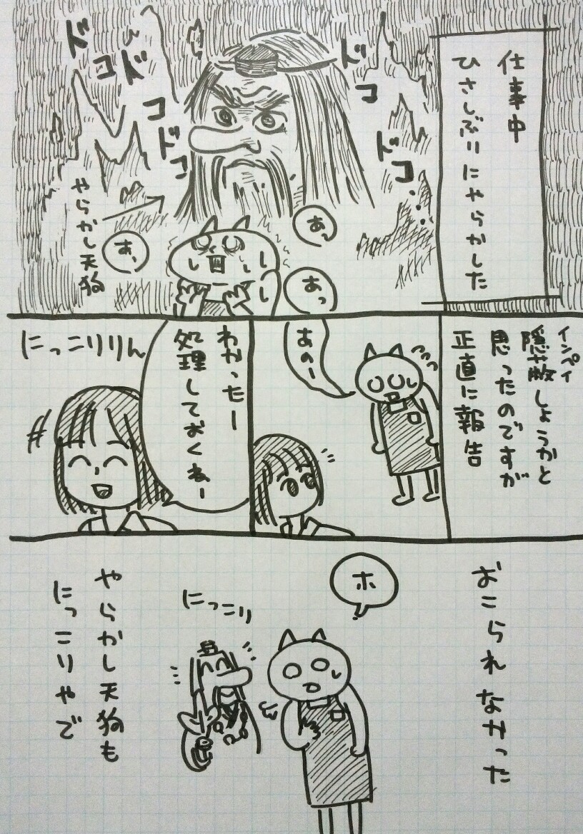 (やらかし天狗とは、何かやからしてしまった時に心に現れる天狗です)